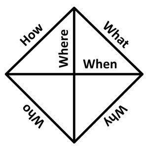 I’ve mentioned several times the fourfold of Who, What, Why, and How, mostly because I perceive an association between it and Aristotle’s Four Causes: Who for Efficient Cause, What for Material Cause, Why for Final Cause, and How for Formal Cause.
