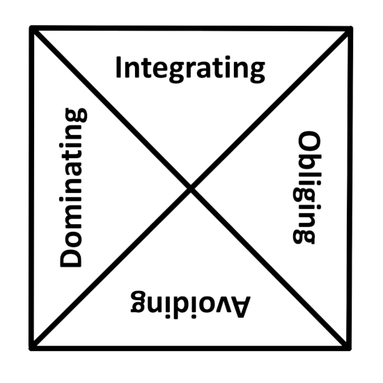 There are several models of conflict but they mostly have two measures: assertiveness or “concern for self”, and cooperativeness or “concern for others”. The models usually place a fifth term in the middle, labeled “compromising”.