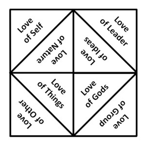 I know that in order to substantiate my claims I should justify these particular selections by comparing and contrasting them with each other, or to show their association to the eight kinds of love, and to do both would be a worthwhile effort. If I just show my diagram and my little list no one will think much of it. I could say I would return later but we all know how I tend to be distracted by the next bright shiny thing.