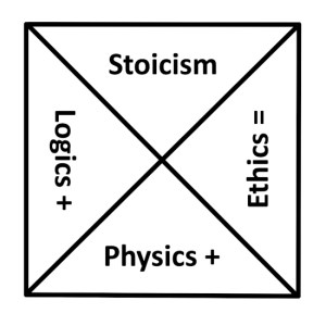 The Four Cardinal Virtues of Wisdom, Justice, Temperance, and Courage are often linked to the “Three Pillars” of Stoicism: Logics, Ethics, and Physics. Logics and rational thought enables the virtue of (practical) wisdom to produce intelligent assent or rejection. Ethics and moral strivings condition the virtue of justice (and courage) to inform proper action or non-action. Physics and natural constraints temper the virtue of courage (and temperance) by proportionate or bounded desire or aversion.