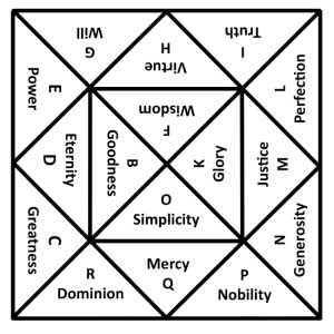 In the same vein, there are other instruments purported to aid in the effort to know thyself, such as Astrology and Myers-Briggs. Astrology has also been used for divination and that is its popular and sad ubiquity, that is “your daily horoscope”. Myers-Briggs is popular in the business world to help the managers manage and to resolve conflicts, and takes itself more seriously. In my foolishness, even though I didn’t believe that there was a perfect language lost in antiquity, perhaps I thought I could invent one anew like Ramon Llull or Gottfried Leibnitz!