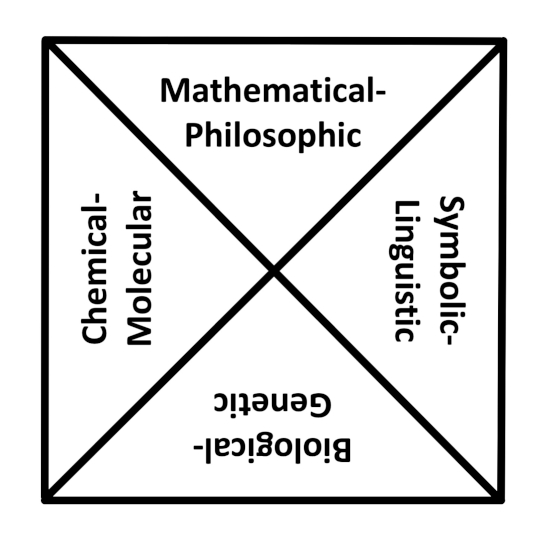Does language reveal reality or does it mask it? Can it blend and synthesize different realities or can it shape and create the very reality we inhabit? I’ve been mulling over the idea of what the next combogenetic alphakit might be, after chemical-molecular, biological-genetic, and symbolic-linguistic. Could it be something hyper-linguistic or hyper-cognitive, to serve as a perfect language, melding syntax, semantics, pragmatics? Or could it be something completely different, a blending of mathematics and philosophy?