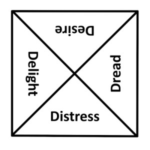 The Stoics divided the passions into four parts, consisting of a two by two matrix of “good” or “bad” emotions versus whether they occur during the present or while thinking about the future.